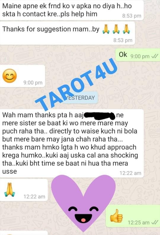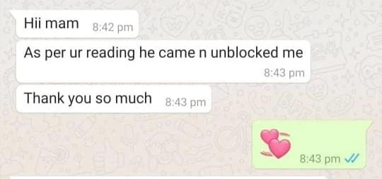 Through the reading, the cards guided that he would unblock her soon and that things would improve. Just as the cards predicted, her boyfriend unblocked her and they were able to resolve their issues.