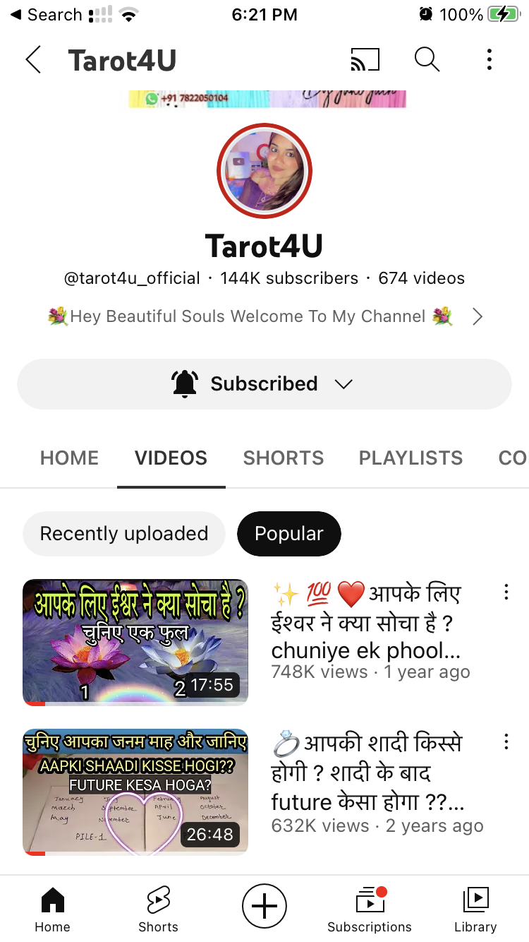I have helped more than 22,700+ clients worldwide by providing tarot readings and creating a positive impact on their lives. I have built an enormous community of over 144,000+ YouTube subscribers and 56,000+ Instagram followers till now, and it’s continuously growing with your support.