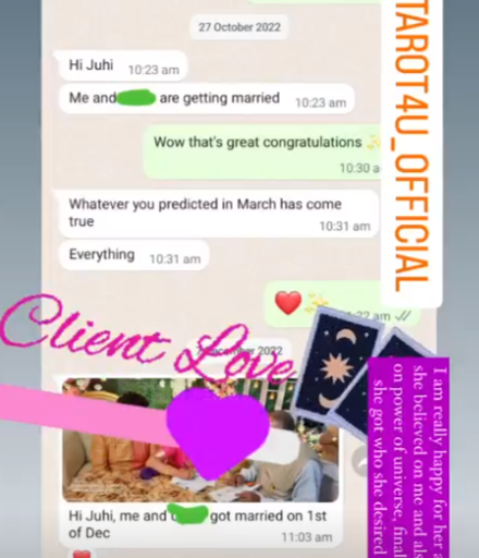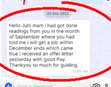 I have been taking guidance from Juhi from past 2-years and from then my life has changed in so many ways. I really recommend her, if you are looking to solve your problems.Â